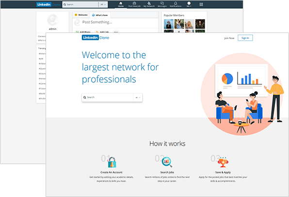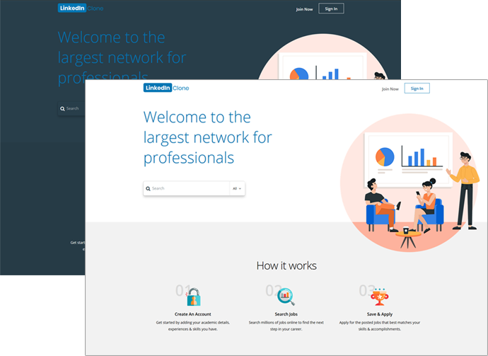 So do you also want to build up your own Linkedin type Social Network and want the same look & feel for your website like it, then our Professional Linkedin Clone Theme will help you to build a successful customized social network for professionals with the various customizations such as for Header, Footer, Login/Signup Popups, Mini Menu, Color Schemes (for Header, Footer, Body, Landing Page etc.). You can also choose Vertical Sidebar Opening Effects for the header which will give a more professional look to your website. Also this theme provides you full control over every element placed on the Attractive Landing Page which site owner can easily configure from the widgets in Layout Editor.