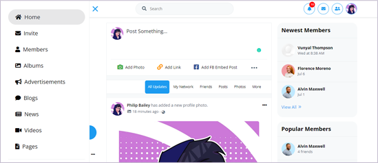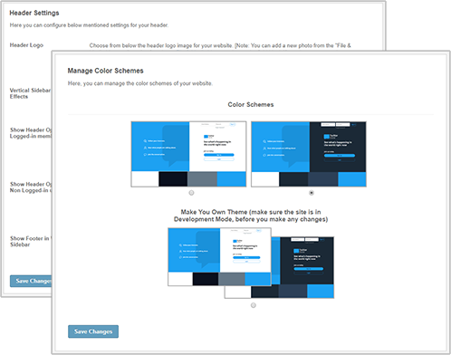 Header decides the overall quality & look of your website. It is the first thing that every website visitor notices. You can transform the look of your website by enabling various settings for the header of this theme from the Admin Panel. You can choose Header Logo, Vertical Sidebar Opening Effects, Header Options to Logged-in / Non Logged-in members, Footer in Vertical Sidebar from the Admin Panel which will enhance the header and make it look more stylish & feature rich.