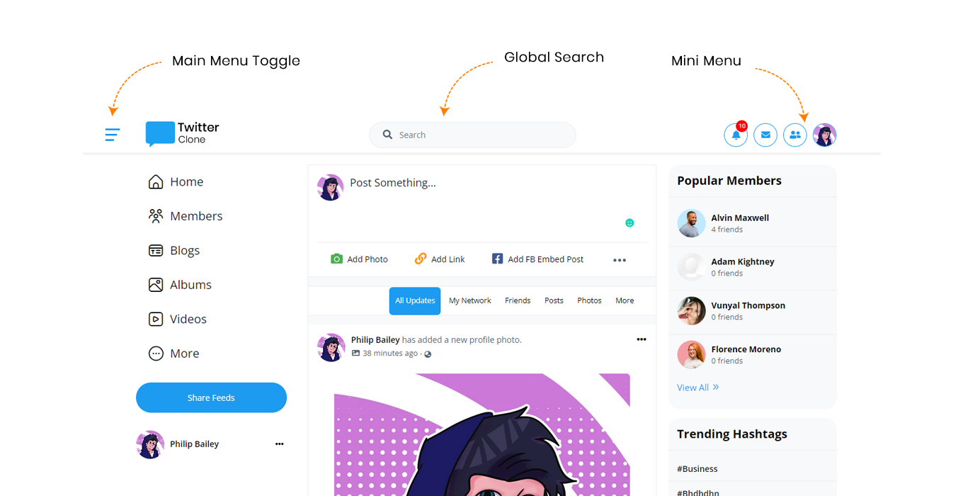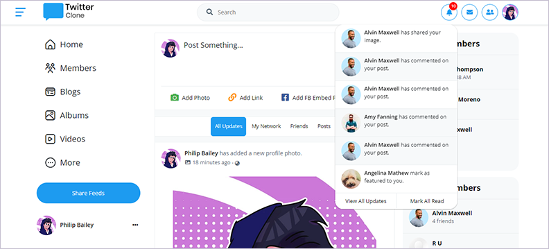 Our Twitter Clone Theme comprises of all essential features that will empire you to run a successful Social Networking website just like Twitter.