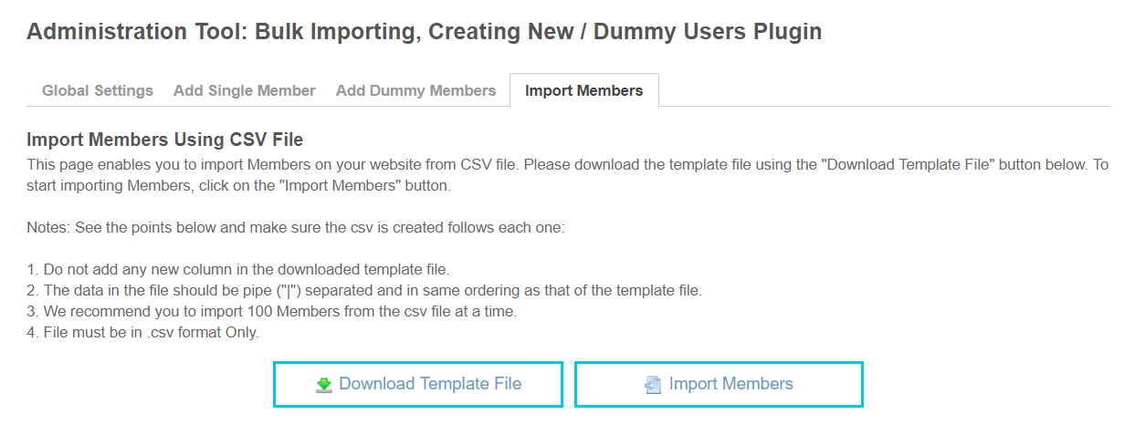 This process is very reliable and time saving which ultimately reduces the efforts of members creation one by one for your site.