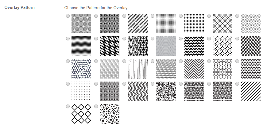 - Slide Overlay with 30 Patterns: For each Slide in Banner you can now choose any pattern from the available 30 Patterns from the Admin Panel. You can choose the Opacity for the selected pattern.