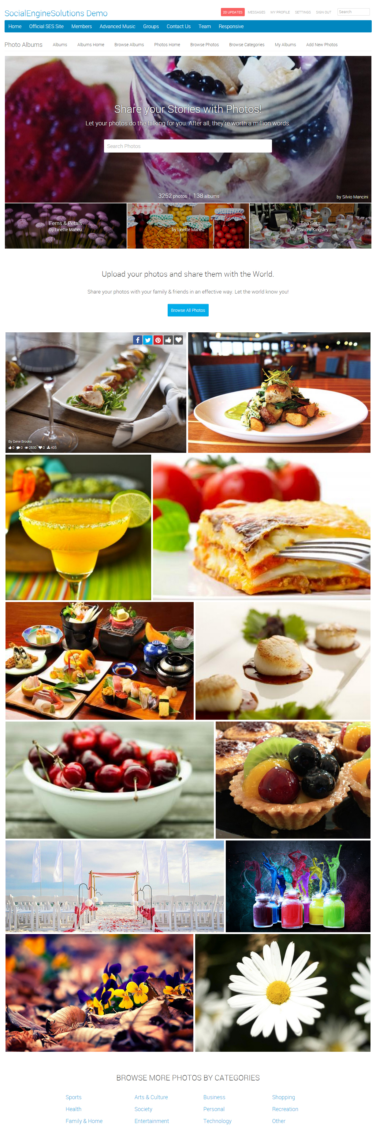 New widgetized pages for Photos Home, Browse Photos, Browse Categories, etc will be an added attraction with all new Albums Welcome Page which with a choice to make it Landing Page of your website from admin panel.