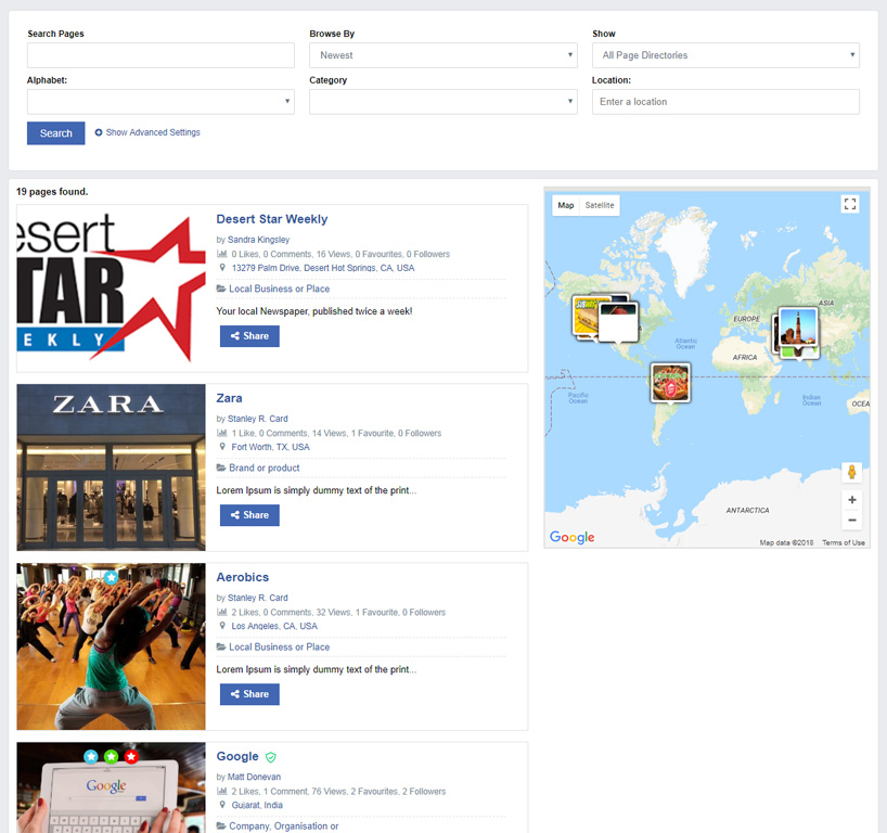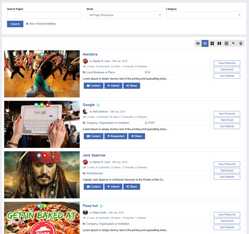 Easy creation of Businesses, 7 View Types, Easy to manage Robust Dashboard, multiple locations, Business Roles, Insights & Reports, manage notifications, page advertisements, manage apps, etc features will enable you to have robust and very powerful directory system on your website.