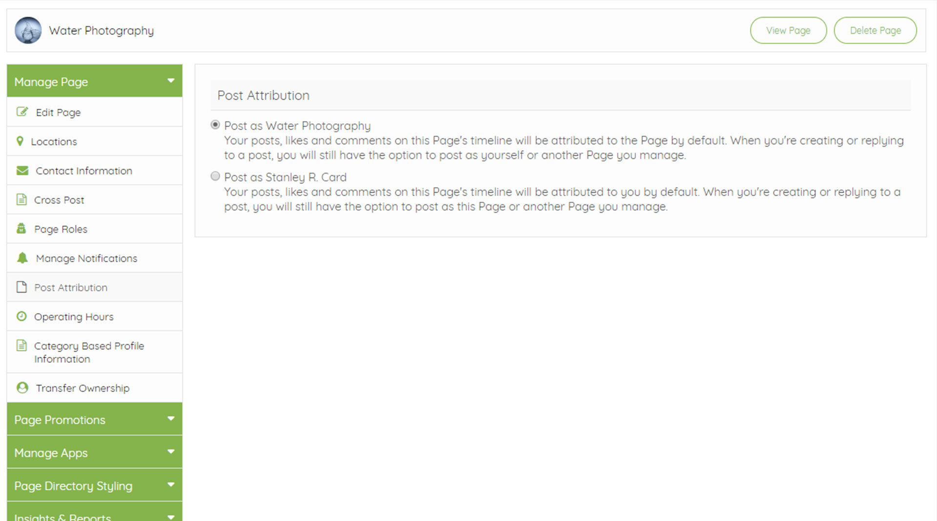 The Posts, Likes and Comments on this Business’s timeline will be attributed to the Business when Post Attribution is set as Business Name. While creating or replying to a post, you will still have the option to post as yourself or another Business you manage.