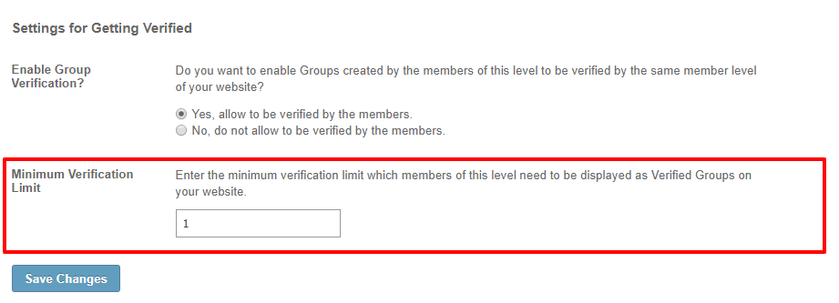 Allow Verification of GroupsChoose to allow members of any level to verify Groups on your website.
