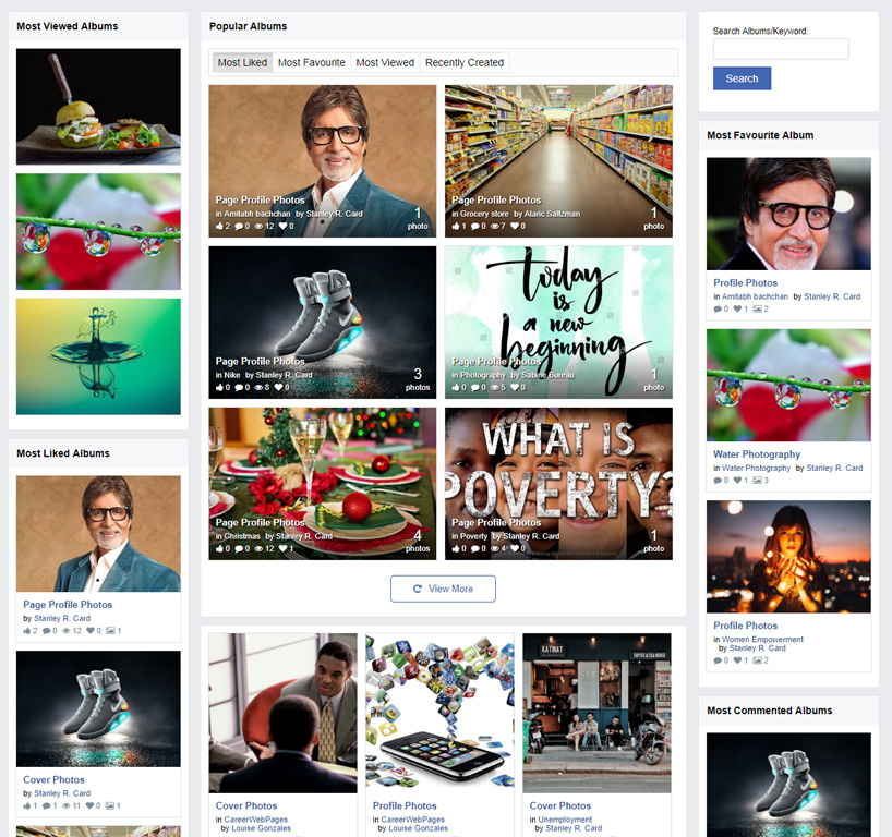 - View, Edit, Delete, Search, Monitor Albums and photos