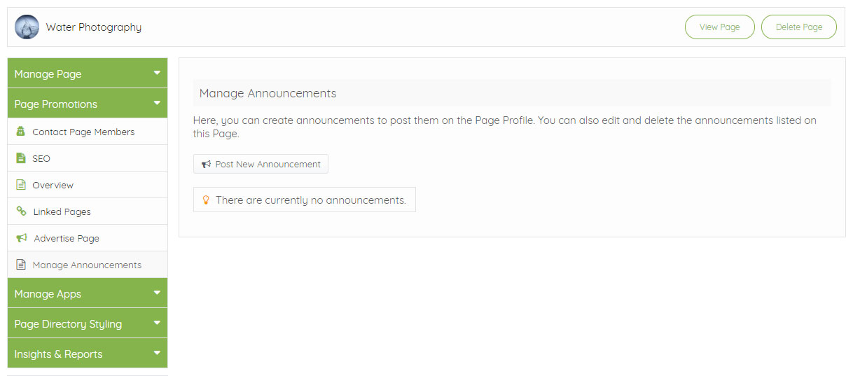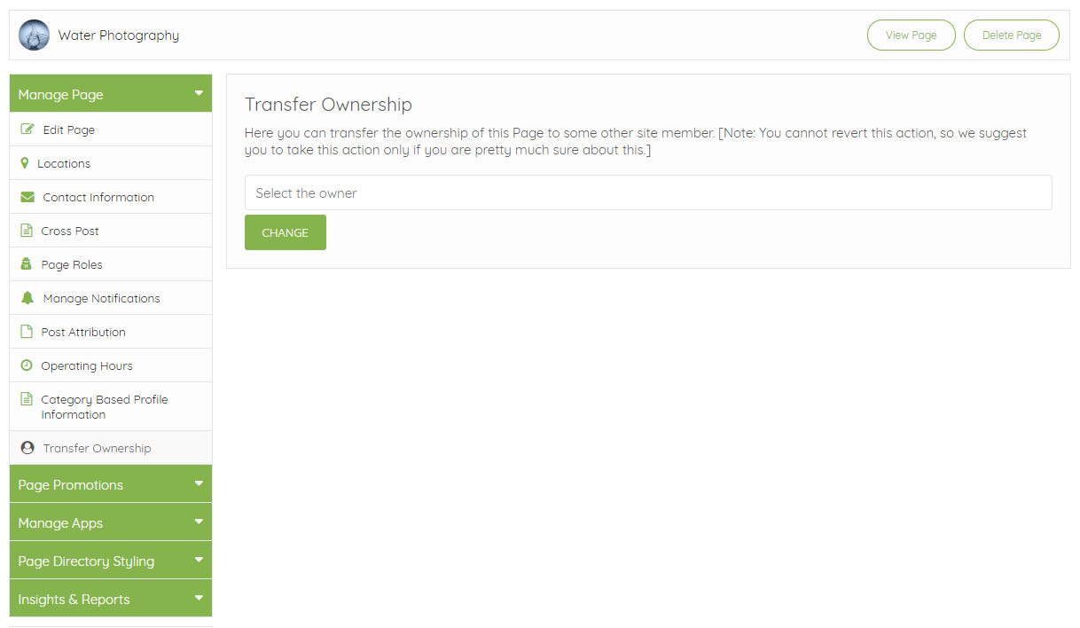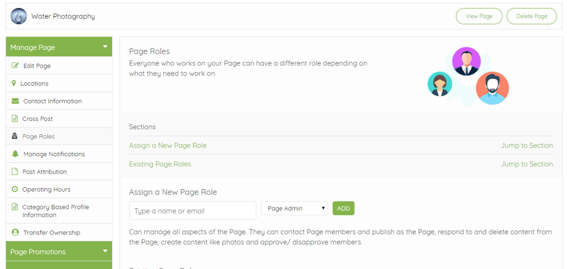 - Allow to Manage Announcements, Page Roles, Transfer Ownership and View Insights & Reports