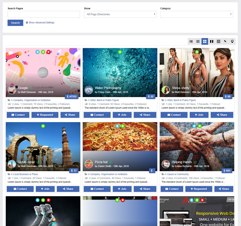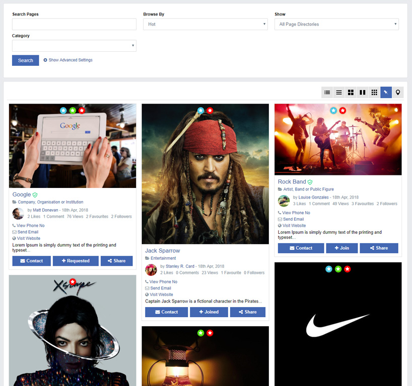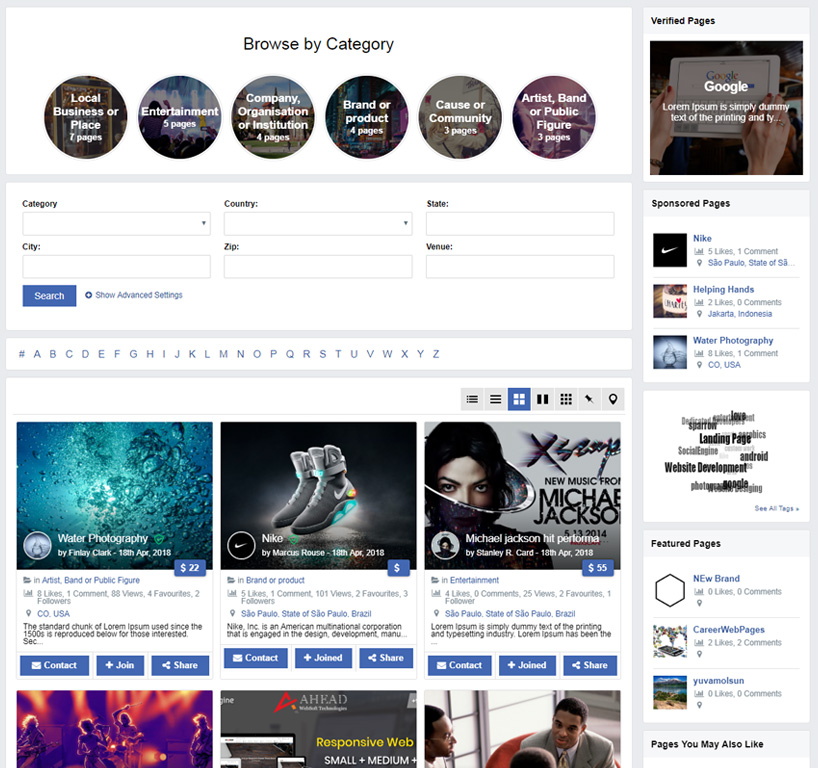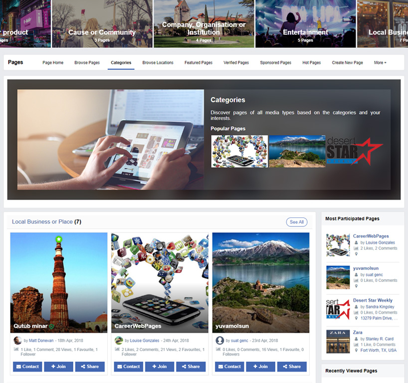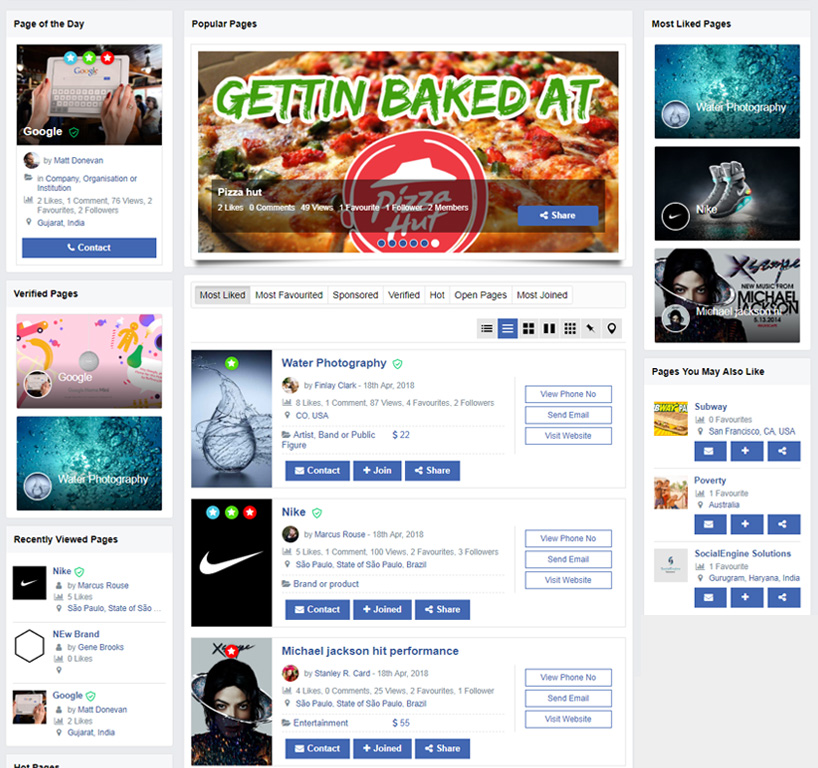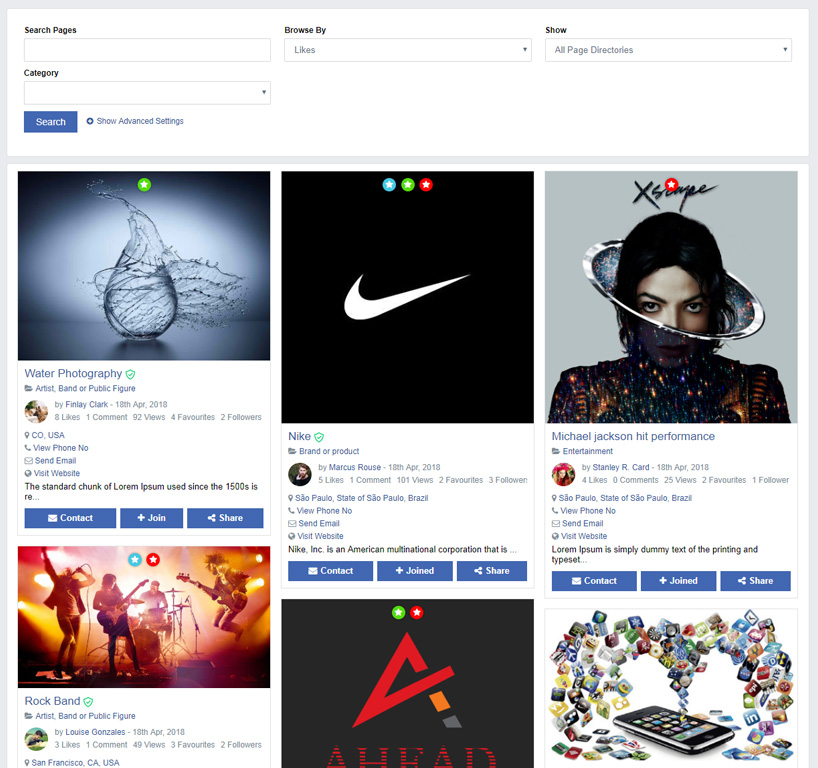 Get this plugin and create directory of Pages on your website with robust features of this plugin. The most exciting feature of this plugin is the Page Feeds Display in Main Feed. You can choose to enable the feeds to be displayed to members only from the Page they have Liked, Followed, Joined or marked as Favourite on your site.