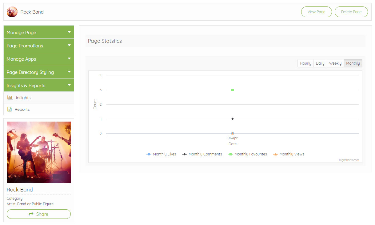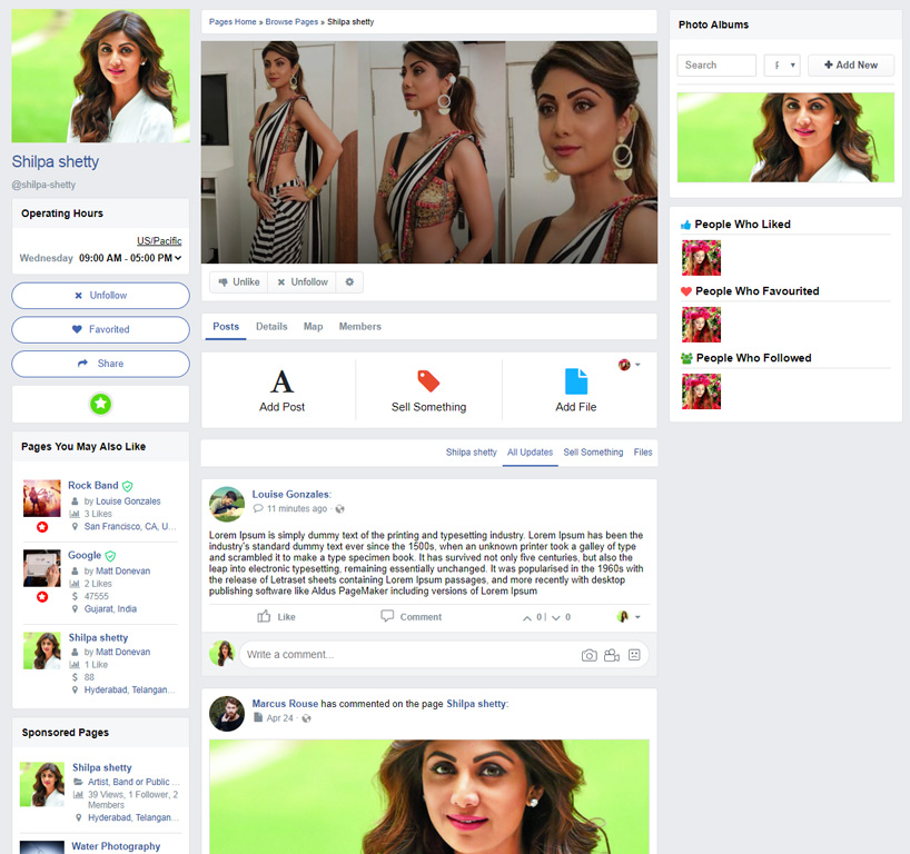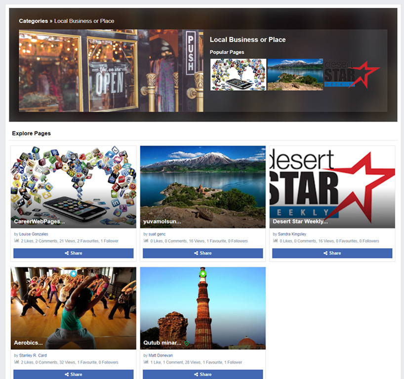 - Can Allow to Share, Favorite, Report and Follow Pages