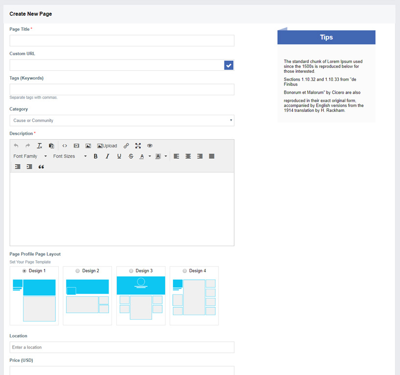 - Enable Page Description, make Page Description and Main Photo Mandatory