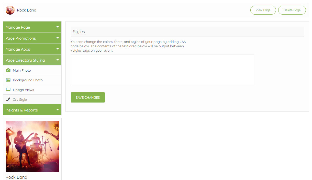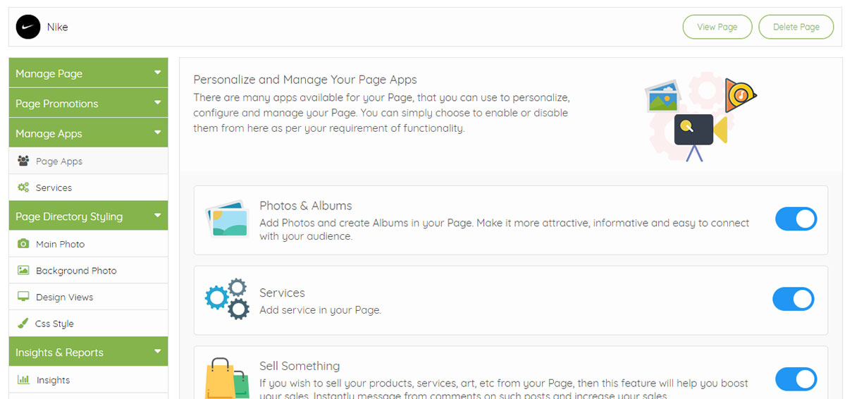 - Enable Background Photo, Contact Info, Enable Page Report & Insight, Edit Style and Page Service