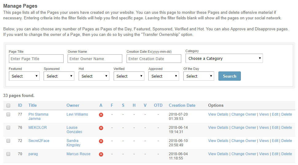 - Automatically Mark Pages as Featured, Sponsored, Verified, Hot