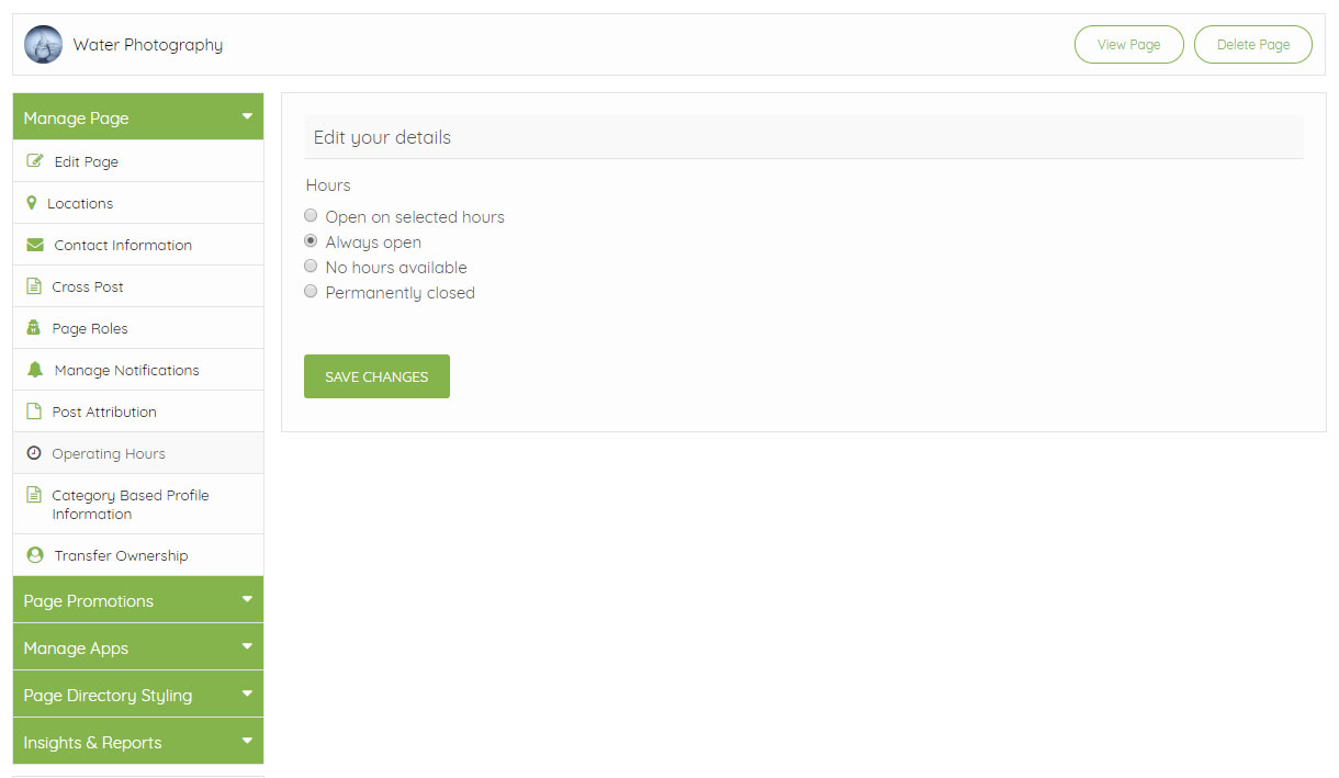 - Allow to Claim Pages, Add Linked Pages,Add Multiple Locations, Manage “Operating Hours” and “Close Page”