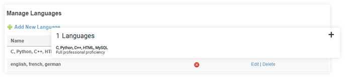 - This section lists all the Languages that the user will add in there Languages field. Admin can also add languages manually from this section.