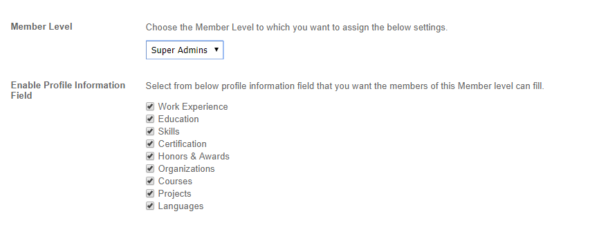 - Profile Field Information which admin can decide which fields should be filled by the users of which member level.