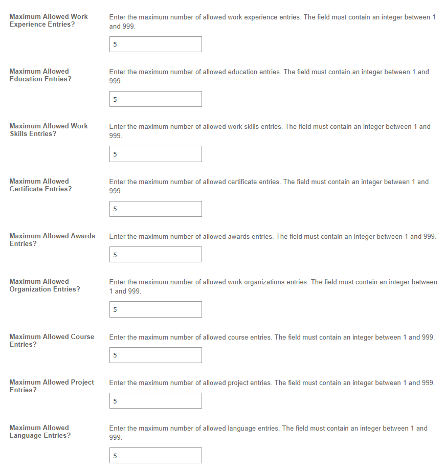 - Maximum Allowed Entries settings can be configured for the Following fields: