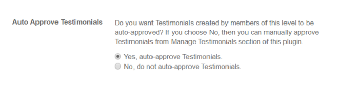 - For restricting the less useful or offensive testimonials on your website, Admin is allowed to enable the admin approval setting for the testimonials on member level basis.