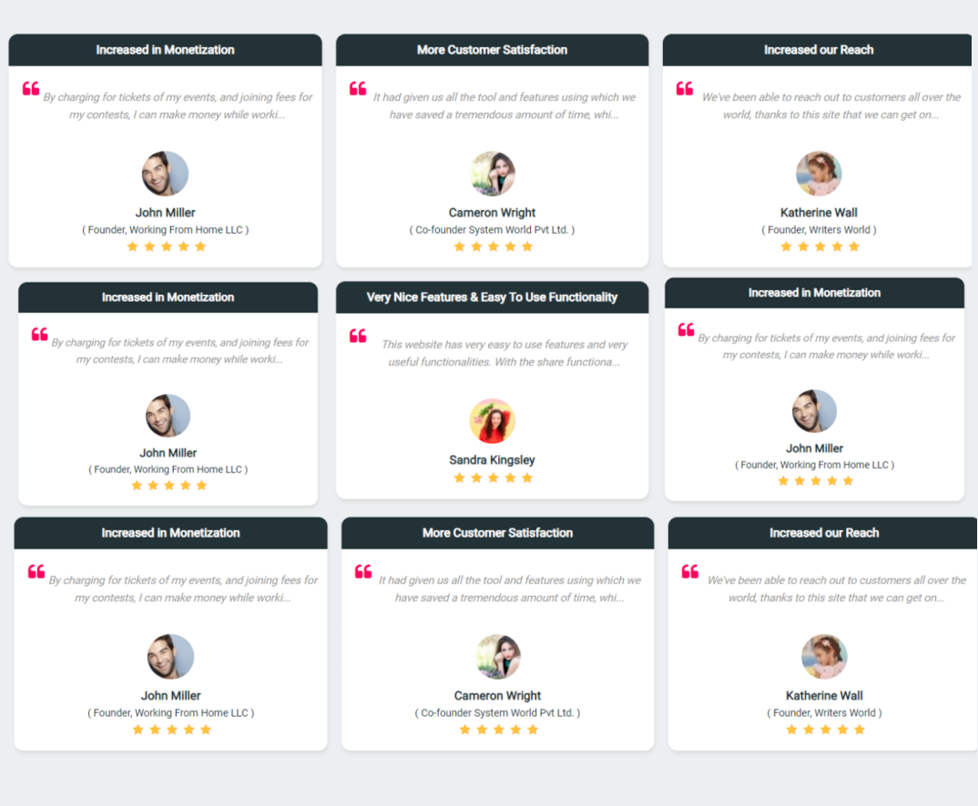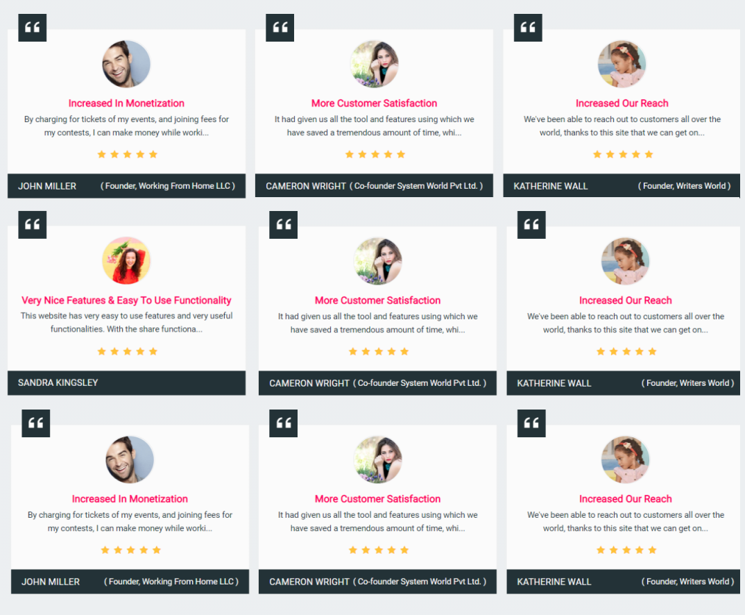 - With these designs you can showcase your testimonials very creatively on your website which ultimately increase the number of visitors at your site.