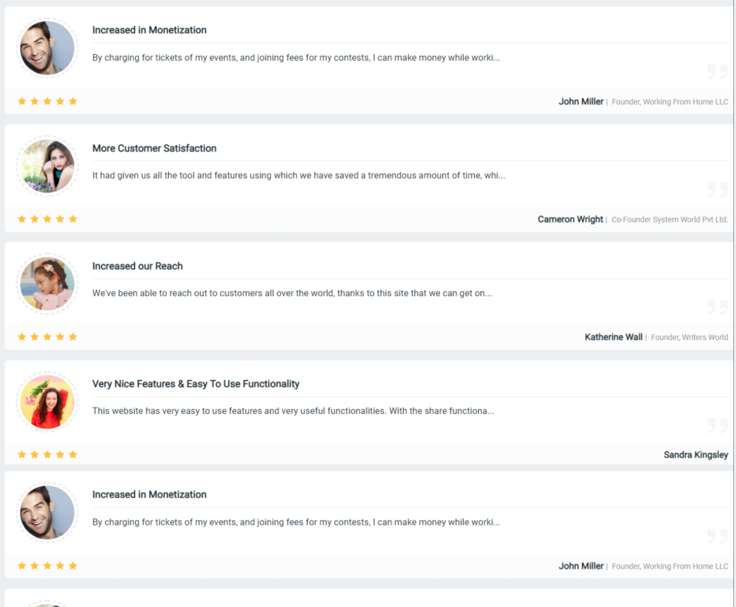 - These testimonials can be displayed at various pages & widgets on your website very attractively.