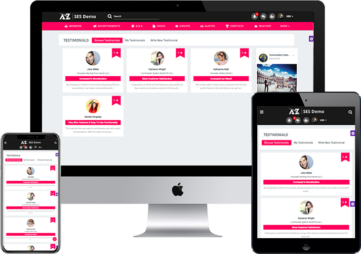 Member Level SettingsRich Member level Settings which enables your members to create, view, edit and delete, Comment on Testimonials on your website.